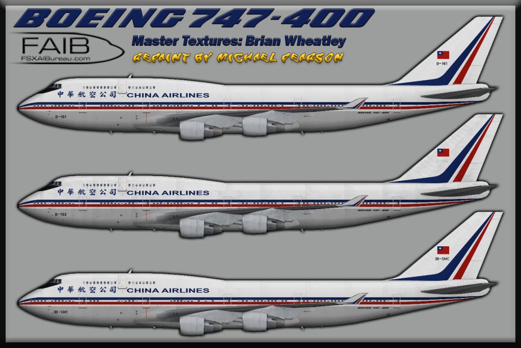China Airlines 747-200 July 31, 2022 by tjap97msncom, posted in China Airlines FAIB Model, Master Textures by Brian Wheatley, other fleet repaints available on Brian’s Retro AI website.
