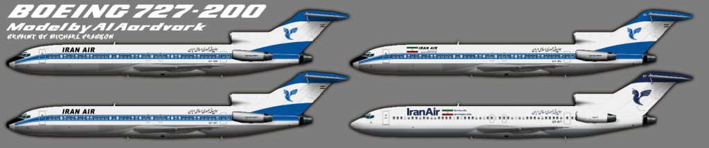 Iran Air 727-200 August 26, 2023 by tjap97msncom, posted in Iran Air AIA Model Share this: Click to share on X (Opens in new window) X Click to share on Facebook (Opens in new window) Facebook Like Loading... Related