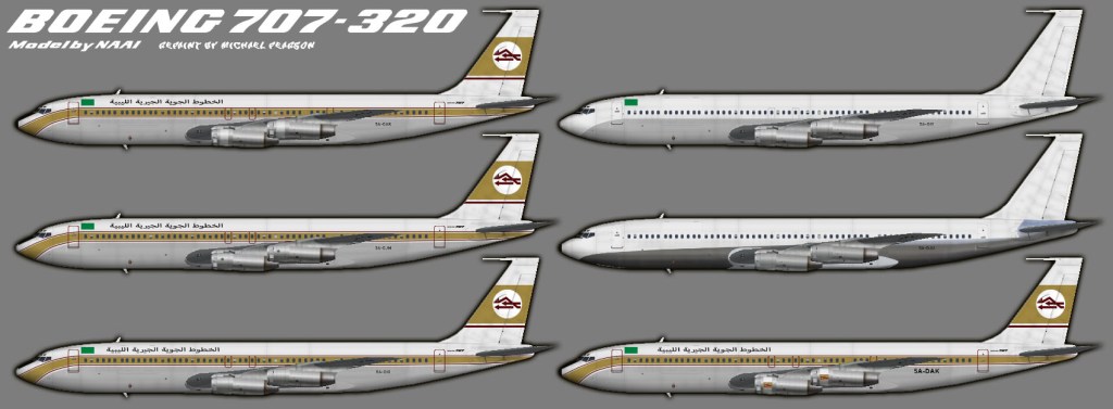 FAIB Model. This is a semi-fictional package. LAA opted out of two built-and-painted 747 Combis in the early 80s, so this package explores their possible use with the airline up through the early 2000s. The Boeing demo paint is factual, the other two are fictional.