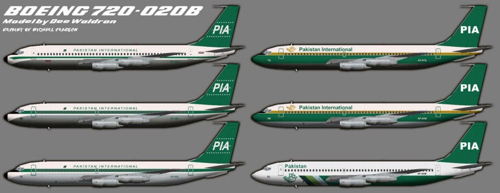 Pakistan International Airlines 720-020B September 23, 2023 by tjap97msncom, posted in Pakistan International Airlines DWAI Model (note, the 1991 paint was never in service, but is a museum static display in Lahore)